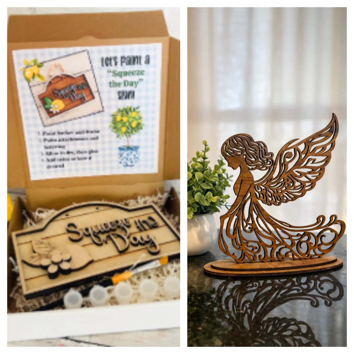 • Handcrafted wood pieces ready to display